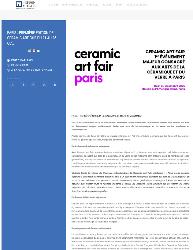 CERAMIC ART FAIR PARIS SE LANCE DANS LA CAPITALE
